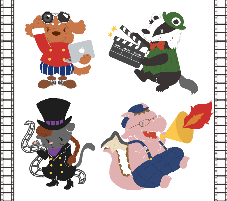 それぞれのキャラクターが映像制作のキーアイテムやなじみのあるアイテムを持っています。